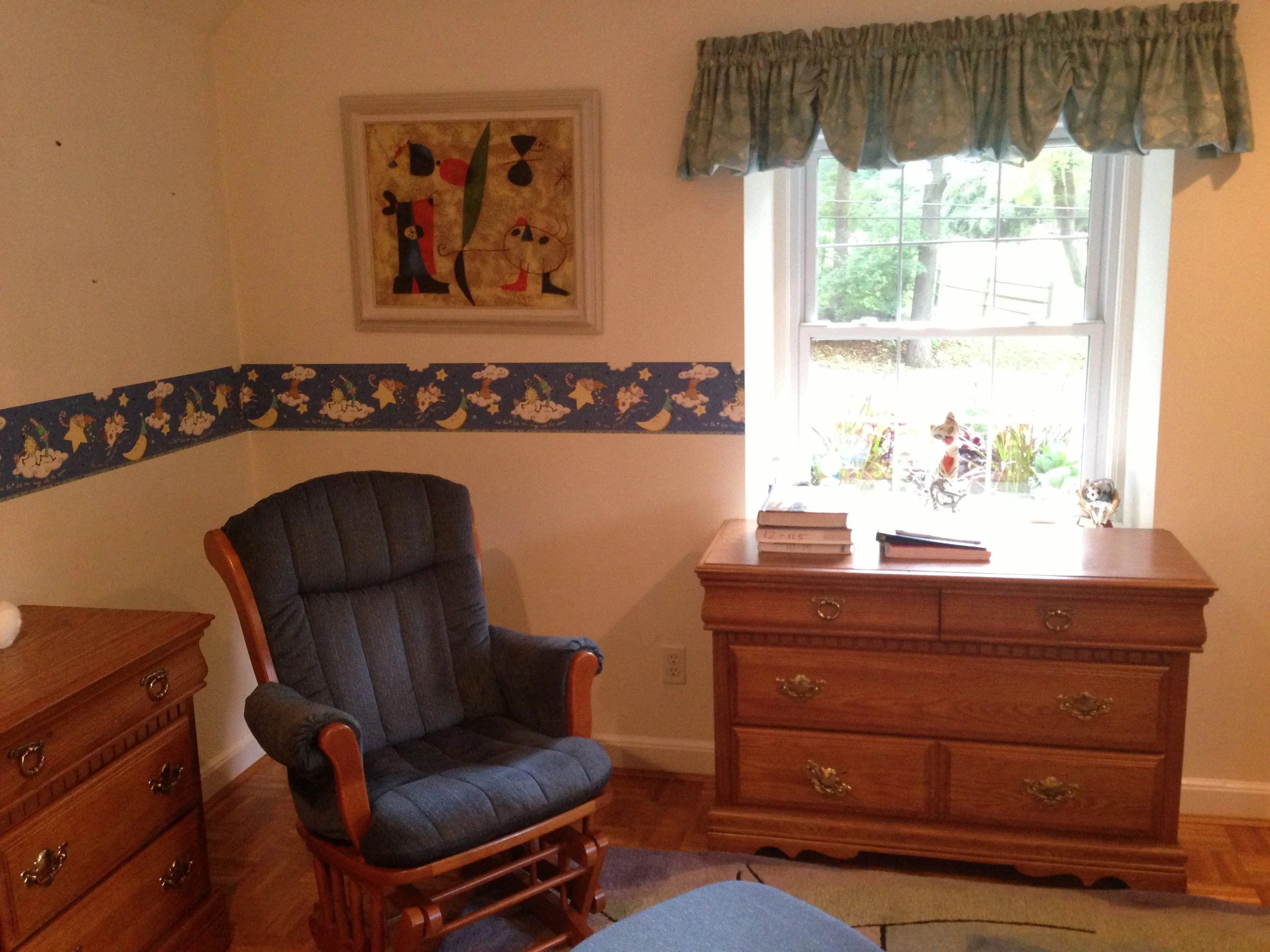 Daniel, a 15 year old boy, was self-conscious about his bedroom. The room still had leftover furniture and wallpaper from the time he was a baby. Daniel wanted his room to be ‘cool’ and ‘modern’, but he didn’t know how to go from what he had to what he wanted. With some coaching, we were able to help Daniel discover and communicate the kind of bedroom he would really love. He responded mainly to grays and blue hues, and was adamant about having a large poster of outer space. He needed a desk to work at and a replacement for his old rocking chair.